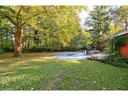 Set on a spectacular 0.566-acre lot, this property is enveloped by towering trees and lush gardens, and backing onto the tranquil Kings Park Woods. Offering nearly 25,000 sq. ft. of privacy and tranquility, this Muskoka-like retreat sits on one of Southeast Oakville's most prestigious streets. A generously sized interlocked driveway leads past the elegant front yard to an impressive 3-car garage. Lovingly maintained by the same family for over 40 years, the home is in pristine condition. The interior features expansive principal rooms, including formal living and dining spaces, a large kitchen with a breakfast area addition, and an open-concept family room—perfect for both day-to-day living and entertaining. A wealth of windows throughout brings in abundant natural light and frames beautiful views of the front streetscape as well as the forested backyard. With multiple fireplaces and hardwood floors throughout the main level, the home exudes warmth and charm. Convenient access to the garage is provided through the laundry room. Upstairs, the spacious primary suite is complemented by three double closets, built-in bookcases, a 3-piece ensuite, and additional flexible space. Two more generously sized bedrooms, along with a 4-piece bathroom featuring a jacuzzi tub, complete this level. The true highlight of the home is the backyard—a private oasis of mature trees, manicured gardens, and a well-positioned pool that basks in sunlight. A full irrigation system ensures the landscaping stays lush. Recent upgrades include a new roof, furnace, and electrical panel, while the garage boasts 50-amp service, ideal for a lift or electric vehicle charging. Walking distance to Oakville’s top public and private schools, including OT and St. Mildred’s, and just minutes to shopping, this property offers exceptional potential. Whether you choose to build a custom home or renovate and expand this charming residence, the large lot allows for endless possibilities.