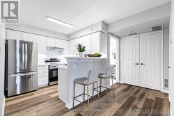 Located in Oakvilles prestigious Glen Abbey neighbourhood, this beautifully updated 1 Bedroom + Den, 1 Bathroom condo offers an open-concept layout with new flooring (2025) and a living/dining area with walk-out to balcony. The kitchen features stainless steel appliances, as well as updated: countertops, backsplash, new lighting including under-mount, sink, faucet and dishwasher (2025). The 4-piece Bathroom offers updated vanity and lighting. The Bedroom includes built-in closet organizers and the versatile Den is perfect for home office or second bedroom. Additional features include convenient in-suite laundry, linen closet and private locker storage accessible from the balcony. Amenities include: fitness centre, party room and visitor parking. Close to parks, shopping, top schools, Oakville Hospital, highways and GO, this condo is a perfect choice for first-time buyers, down-sizers, or investors seeking a stylish, low-maintenance home in one of Oakvilles most desirable communities. (id:27)