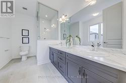 Nestled in the heart of Pickering's most desirable neighborhood, this impeccably upgraded detached home offers a rare blend of modern luxury and functional design. Boasting a double-car garage, soaring 9-foot ceilings across all three levels, and premium finishes, this residence is a true standout in the Seaton Mulberry community. Step inside to discover a sunlit main floor designed for effortless living and entertaining. The open-concept layout features a spacious dining area flowing seamlessly into a generous great room, anchored by a sleek electric fireplace and overlooking a serene, private backyard. Culinary enthusiasts will adore the oversized eat-in kitchen, complete with upgraded quartz countertops, while the abundance of natural light and airy 9-foot ceilings enhance the homes inviting ambiance. Upstairs, the second floor impresses with continued 9-foot ceilings and a luxurious primary suite. Retreat to a bedroom adorned with a raised smooth box ceiling, a walk-in closet, and a lavish 4-piece ensuite featuring a standalone shower and deep-soaking oasis tub. Two additional bedrooms, a versatile family room, and three full bathroomsincluding a main bath with a frameless glass super showerensure comfort for family and guests alike. The raised basement adds unparalleled versatility, with 9-foot ceilings, large windows, and a separate entrance. This bright, welcoming space is ideal for an in-law suite, rental unit, or recreational haven. Combining prime location, sophisticated design, and move-in-ready perfection, this home is a rare opportunity in Pickerings sought-after enclave. Dont waitschedule your private tour today and experience luxury living at its finest! (id:27)