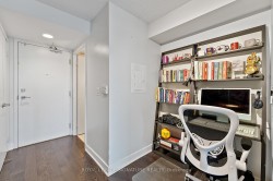 Welcome to Suite 718 at The Modern. Step into a bright and functional 1+den layout featuring a galley kitchen with stainless steel appliances overlooking the open-concept living area. The spacious living room is framed by floor-to-ceiling windows and a Juliette balcony, filling the space with natural light. The bedroom sits just off the living room with sliding glass doors and closet. Enjoy world-class building amenities including a rooftop garden with BBQ area, two plunge pools with cabanas, a party room, bar and billiards, fitness centre, yoga studio, steam room, 24-hour concierge, and visitor parking. Conveniently located with TTC at your doorstep and just a short walk to St. Lawrence Market and the Distillery District.
