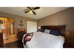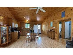 Located in the popular Lakes of Wasaga resort community, this charming year-round home offers 856 square feet of living space, including a bright two-season sunroom. The community provides a resort lifestyle with access to tennis courts, mini golf, pools, and children’s play areas. Inside, the home features two bedrooms and a three-piece bathroom with a newly updated sink backsplash. The spare room includes a built-in Murphy bed and desk, providing a flexible option for guests or a home office. The open-concept living room, dining room, and kitchen showcase cathedral pine ceilings and walls, creating a warm, inviting atmosphere. Convenience is enhanced with a stacked washer and dryer. Additional highlights include an in-ground irrigation system, generous-sized shed, and freshly stained front and back decks as well as the sunroom floor. A new AC unit was installed in May 2025. The backyard features a fire pit, perfect for relaxing evenings. The home also offers a four-foot crawl space with ample storage, housing the furnace and hot water heater. A paved driveway provides parking for three vehicles. From here, it’s just a short walk along two dedicated paths to New Wasaga Beach. Monthly fee of $772.01 (on leased land) includes property taxes, lease fee, maintenance.
