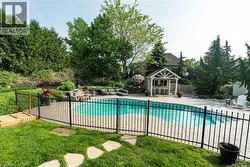 Welcome to luxury living on one of Waterloo’s most desirable courts! This custom-built all-brick bungalow by Milla Homes offers 3,330 sq.ft. of refined living space, highlighted by vaulted ceilings, hickory-style hardwood, and premium finishes throughout. The main floor showcases a spacious primary suite with tray ceiling, walk-in closet, and a spa-inspired ensuite featuring a whirlpool tub and glass steam shower. A versatile second bedroom or office is paired with a stylish 3-piece bath. The chef’s kitchen is a showpiece with granite counters, stainless steel appliances, and a distinctive circular island opening onto the great room with a double-sided fireplace and formal dining area. The bright walk-out basement provides exceptional flexibility, ideal for an in-law suite or independent space for older children. Recently updated with new flooring, it features large windows, a kitchenette and bar with fridge, sink, and stove hookup, gas fireplace, two bedrooms, and a full bath. One bedroom is designed as a second primary suite, complete with walk-in closet and ensuite access, creating a perfect private retreat. Step outside to your secluded backyard oasis, offering professional landscaping, a large deck, in-ground pool with rock waterfall, hot tub, cabana bar, stone pathways, and full fencing for privacy. All this, just minutes to top schools, Molly Bean Playground, shopping, trails, and everyday amenities (id:27)