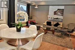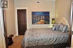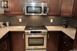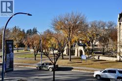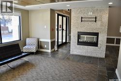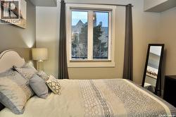 Welcome to this lovely condo in J.B. Black Estates situated across the street from the University of Saskatchewan and both Royal University and Jim Pattison Children's Hospitals. Ideally located within close proximity to downtown, river valley and walking trails and the vibrant Broadway District, this great unit offers two bedrooms two baths large bright open living area featuring hardwood and tile floors. natural gas fireplace, ample kitchen cabinets with granite counter tops, snack bar and tile backsplash and offers stainless steel appliances with natural gas range plus 9 ' ceilings. The primary bedroom has double walk thru closets leading to a spa like ensuite with 6'ft jet tub. double sinks, granite counter tops and heated tile floors. The main bathroom has a walk in shower with body jets and full glass doors. Also includes a large storage room/ laundry room, one underground parking stall and storage locker plus natural gas on balcony for your bbq or grill. Call your Realtor to view this fine condo today! (id:27)