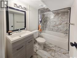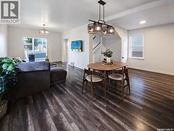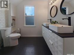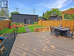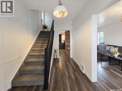This updated three-bedroom home offers a unique blend of charm and contemporary finishes. The main floor boasts an open-concept layout, while the kitchen features custom cabinetry, extensive counter space, pull-out drawers, smart storage solutions, and modern appliances including a gas range. The front den is filled with ample natural light. Upstairs, you'll find three bedrooms—the primary includes a spacious walk-in closet with custom shelving and organizers. Another bedroom is ready for a second-floor laundry installation. The upstairs bathroom is equipped with a double sink vanity, heated tile flooring, and a large walk-in shower. The finished basement offers carpeted floors, counters set up for a wet bar, and a dedicated laundry area. Recent upgrades by the sellers include a new water heater, furnace, rewired electrical, plumbing, flooring, paint, remodeled kitchen, appliances, and deck (2020), bathroom renovations (2021), completed basement (2022), and new shingles on the south side of the roof (2023). The large, detached garage, built just a few years ago, is heated and spacious enough for three vehicles, extra storage, and a workshop. With easy trailer access, it's ideal for tradespeople or those with trailers. Additionally, construction has begun on a new city-centre school—serving Riversdale, King George, and Pleasant Hill—which will also offer new childcare spaces and is scheduled to open in 2027. If you’re seeking a stylish home with generous living space, a large, finished garage, and a backyard perfect for entertaining, this property deserves your attention. There’s plenty of potential and value here. (id:27)
