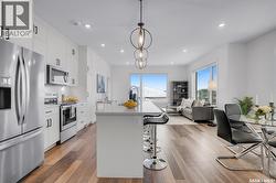 Welcome to 300-105 Willis Crescent, a bright and inviting top floor 2 bedroom, 2 bathroom corner unit offering comfort, convenience, and modern living in desirable Stonebridge. This thoughtfully designed unit faces east, providing peaceful views and beautiful natural light throughout the day. The open-concept layout features a modern kitchen with stainless steel appliances, tile backsplash, ample cabinetry, and an island perfect for entertaining. The living room opens onto a private balcony with natural gas BBQ hookup, perfect for BBQ'ing and relaxing outdoors. The spacious primary bedroom includes a 4-piece ensuite. A second bedroom, 4-piece bathroom and in-suite laundry complete this condo. Additional highlights include Hunter Douglas blinds, central air conditioning, and 2 parking stalls - 1 surface stall and 1 underground stall with a storage unit. Residents enjoy access to excellent building amenities including: Amenities/rec room with outdoor terrace, exercise room and guest suite available to rent for visitors. Located in the vibrant Stonebridge neighbourhood close to shopping, restaurants, parks, and transit. Immediate possession available. Move-in ready, book your private showing today! (id:27)