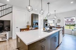 Welcome to this stunning semi-detached home with a front-attached single garage, nestled in the vibrant and family-friendly community of Midtown, Airdrie. Thoughtfully designed with both style and functionality in mind, this two-storey home is perfect for families or anyone seeking a modern, connected lifestyle.Step inside to a bright and contemporary kitchen overlooking the charming courtyard, complete with sleek countertops, stainless steel appliances, and a spacious centre island with a flush eating bar. The open-concept main floor flows effortlessly, creating the ideal space for everyday living and entertaining.Upstairs, you’ll find three spacious bedrooms, including a luxurious primary suite featuring a walk-in closet and a private ensuite. A convenient upstairs laundry and an additional full bathroom complete this level.An unfinished basement with its own side entrance, ready to be transformed into a space that fits your needs. Outside, enjoy a large backyard along with access to scenic walking paths, schools, shopping, and all of Airdrie’s best amenities just minutes away.