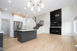Step into a fully custom modern home designed for comfort, style, and functionality. Featuring 4 bedrooms, 3 full bathrooms, and a bright bonus room, this layout is perfect for growing families. The main floor includes a bedroom with a full bath, an impressive open-to-above living area, and a spice kitchen alongside a designer main kitchen with a quartz island, premium cabinetry, and a full tile backsplash. Enjoy vinyl flooring on the main for cozy look and carpet upstairs, and 9 ft ceilings on both the main and basement levels. Upstairs offers a spacious bonus room, a luxurious primary suite, two additional bedrooms, a full bath, and convenient laundry. With a side entrance and two basement windows, this home is also perfectly set up for a future legal suite. All appliances and blinds included.