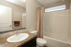 FULLY DEVELOPED 5 BEDROOM, 3 BATHROOM MODIFIED BI-LEVEL ~ WALKOUT BASEMENT ~ BACKING ONTO A WALKING PATH & POND ~ SEPARATE SIDE ENTRY ~ Covered front veranda leads to a welcoming foyer with high ceilings ~ The open concept main living space is complemented by soaring vaulted ceilings and large windows that fill the space with natural light and have views of the natural space just behind ~ The kitchen offers a functional layout with plenty of dark stained cabinets, full tile backsplash, tons of granite counter space including a massive island with pendant lights above, and a walk in pantry ~ Easily host large gatherings in the dining space that's surrounded by floor to ceiling windows, and garden door access to the sunny west facing deck with more great views ~ The spacious living room features a cozy gas fireplace with stacked stone surround, mantle and space for your TV above ~ 2 main floor bedrooms are both a generous size with ample closet space ~ 4 piece main bathroom has an oversized vanity and a linen closet ~ The private primary suite is tucked away on it's own level and features soaring vaulted ceilings, a spa like ensuite with a soaker tub and separate walk in shower, a large walk in closet, and additional storage space ~ Lower level mud room just off the garage has large windows and offers a second, separate entry on the side of the house with access to the basement with conveniently located laundry and a large storage just at the bottom of the stairs ~ The fully finished basement features high ceilings, large above grade windows, built in speakers and operational in floor heat and two laundry hook ups~ Large L-shaped family room with plumbing roughed in for a wet bar has plenty space for a media area and games tables ~ Garden door from the family room walks out to a covered concrete patio with wiring for a hot tub ~ Two basement bedrooms are located adjacent to a 4 piece bathroom and linen closet ~ 25' L x 24' W double attached garage is insulated, finished with painted drywall, has built in shelving, two overhead doors and a man door leading to the front yard ~ The backyard is landscaped, has a fire pit, garden shed, and is fully fenced with direct access to the walking trails and natural reserve just behind ~ Easy access to parks, playgrounds, schools, and shopping ~ Pride of ownership is evident in this well cared for home!