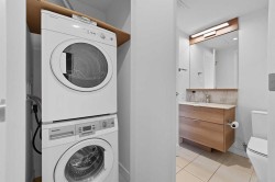 Welcome to Waterfront Parkside, where contemporary design meets an unbeatable downtown riverfront location. This 10th floor, 1 bedroom, 1 bathroom suite offers 468 sq. ft. of thoughtfully designed living space with east-facing views of the Bow River.The open layout features wide-plank flooring, quartz countertops, and a modern kitchen with stainless steel appliances including a Blomberg refrigerator and built-in oven, Fulgor gas cooktop and dishwasher, and in-suite Blomberg washer and dryer. Floor-to-ceiling windows bring in natural light, while the private balcony extends your living space and is equipped with a BBQ gas line. An assigned underground parking stall and storage unit are included.Residents of Waterfront Parkside enjoy exceptional amenities: 24-hour concierge and security, a fully equipped fitness centre, hot tub, steam room, owner’s lounge with kitchen, guest suite, and secured heated underground parkade with visitor parking.The location places you along the Bow River pathways, next to Sien Lok Park and steps from Prince’s Island Park. Downtown Calgary’s restaurants, cafés, and business district are within walking distance, with the planned Eau Claire LRT station adding future convenience and connectivity.Condo fees include gas, heat, and water.This is a fantastic opportunity to own a modern riverfront condo in one of downtown Calgary’s most desirable locations. Book a private showing with your favorite Realtor® today!