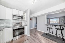 Step into comfort and style with this beautifully updated two-storey townhouse offering over 1,105.7 sq. ft. of inviting living space in a convenient and well-connected NE location. Designed for effortless living, this home blends functionality with warmth—perfect for families, first-time buyers, or anyone seeking low-maintenance living with modern charm. The main floor welcomes you with a bright open-concept layout, featuring the living area, dining area, an eat-in kitchen with a breakfast bar and complete with a pantry. The large windows flood the space with natural light, creating a cozy yet airy feel throughout. Step outside through the patio doors to your private deck, the perfect spot for morning coffee or weekend barbecues. Upstairs, you’ll find three comfortable bedrooms and a full bathroom. Each room offers generous closet space and a sense of comfort that makes this townhouse truly feel like home. The fully finished basement is where you'll find the laundry room, a 3-pc bathroom, a bar, and a spacious family room, perfect for either entertaining or simply relaxing at home. Located just minutes from schools, parks, shopping, and public transit, this property offers the best of convenience and community. Book you showing today!