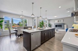 Welcome to 144 Legacy Mount SE an exquisite 2824 sq. ft. detached home in one of Calgary’s most sought-after and family-friendly communities: Legacy. Ideally located across from prestigious Legacy Estate Homes and backing onto a tranquil green space with a playground, this stunning property seamlessly blends elegant design, upscale finishes, and everyday functionality to create the perfect forever home. Step inside and experience a true sense of grandeur. From the moment you enter, you're greeted by 9-foot ceilings, upgraded 8-foot doors, and a show-stopping curved staircase with stylish railings and an open-to-below layout, all illuminated by an abundance of natural light streaming through oversized windows. Throughout the home, hardwood and tile flooring ensure a carpet-free, low-maintenance lifestyle with timeless appeal. At the heart of the home is a two-toned designer kitchen that’s both beautiful and functional. It features ceiling-height white cabinetry, quartz countertops, under-cabinet lighting, and premium appliances including a gas stove, chimney-style hood fan, wine fridge, and a fridge with a water line. Thoughtful touches like hidden sponge storage, a built-in soap dispenser, and strategically placed electrical outlets highlight the attention to detail. The massive central island and walk-in pantry provide exceptional storage and prep space, while the kitchen flows effortlessly into the dining and living areas, offering sweeping views of your private backyard oasis. The cozy living room is anchored by a modern gas fireplace and features built-in speakers, perfect for relaxed nights or entertaining. Step outside to enjoy your 2-tiered cement deck with a BBQ gas line—the ultimate summer setup. Finishing off the main level is a bright home office with double French doors, ideal for remote work, and a spacious mudroom with built-in lockers, leading to the finished double garage, complete with smart storage solutions. Upstairs, a central bonus room smartly separates the luxurious primary retreat from two generously sized bedrooms, offering optimal privacy. The primary suite is a true retreat with a spa-like ensuite featuring dual vanities, ample counter space, medicine cabinet, soaker tub, stand-up shower with built-in bench and dual nooks, a private water closet, and extra linen storage. The expansive walk-in closet comes fully outfitted with custom built-ins and drawers. The two secondary bedrooms each offer walk-in closets with windows and share a beautifully appointed 4-piece bathroom. The upper-level laundry room adds everyday convenience with its utility sink, abundant counter space, lower cabinetry, and ample hanging options. Additional upgrades that are worth noting are central air conditioning, Hunter Douglas Window Coverings Throughout, Built-in Speakers, Ethernet Cat6 Cable in Every Room and Smartphone-Controlled Underground Irrigation System. Don’t miss your opportunity to own this elegant and highly upgraded home!