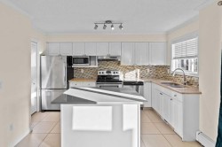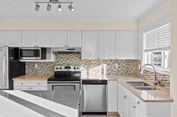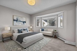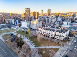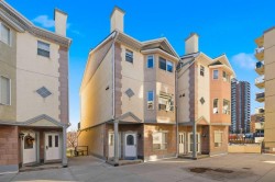 Step into spacious inner city living with this exceptional townhouse at "The Terrace," a secure, gated complex ideally situated steps from 17th ave and overlooking Thomson Family Park. As you enter, the dedicated main level entry leads you up to the well thought out central living space. The generous living room overlooks the complex's courtyard and flows seamlessly into the dining and kitchen area, which is perfectly positioned to capture views of the park. The large kitchen highlights upgraded stone countertops, stainless steel appliances, and ample cabinet space and corner pantry. Patio doors lead directly from the dining room to one of the larger private balconies in the complex offering a south facing, sun drenched space for relaxing and entertaining. The upper level boasts the always desirable double primary floor plan each featuring walk in closets and updated ensuites, perfect for roommates or families alike! Completing the upper floor is the dedicated laundry room, just down the hall. This home also highlights 2 secure parking stalls making sure that your never stuck looking for street parking! With Good Earth Cafe at your door step, green spaces off your balcony, and a dog park a block away this location is truly one of a kind and is incredibly walkable to all of the amenities of 17th ave and the downtown core. Call today for your private viewing!