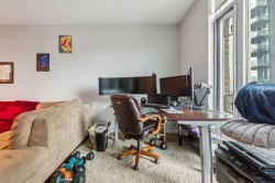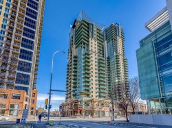 Welcome to urban living at its finest in the sought-after SASSO building! This 1 bedroom + den, 1 bathroom condo is perched on the 16th floor, offering sweeping southwest views which offers maximum sun exposure! This unit is located on the best side of the building, offering incredible views of both the mountains and Stampede Park- a rare offering, as one of only six units in the building with an oversized covered balcony and expanded floor plan. *THE SPECIAL LEVY THAT WAS ASSESSED JULY 2025 FOR $7,188.08 HAS BEEN PAID IN FULL BY THE SELLER. The receipt is included in supplements* Step inside to a bright, open-concept layout featuring a modern kitchen with upgraded dark wood cabinetry, a chic Italian tile backsplash, and sleek black appliances. The kitchen flows seamlessly into the spacious dining and living areas, creating a perfect space for both everyday living and entertaining.The generous primary bedroom features a walk-through closet that connects to the stylish 4-piece bathroom. Just off the entrance, a convenient den with built-in desk and hookups is ideal for a home office. In-suite laundry is tucked away in the primary bedroom closet for ultimate convenience.This unit includes one titled underground parking stall and a separate storage unit.Residents of SASSO enjoy premium amenities including a fully-equipped gym, recreation and billiards rooms, a hot tub, theatre room, and a common outdoor patio and garden space. Located just steps to the Stampede Grounds, The Saddledome and the upcoming new arena, as well as the shops, dining, and nightlife of 17th Avenue, this is an unbeatable location for work, play, and everything in between.Whether you’re a first-time buyer, investor, or looking for a vibrant downtown lifestyle, this unit checks all the boxes. This unit is INCREDIBLE VALUE, The condo with one titled parking stall is assessed at $327,000! Don’t miss out, book your private viewing and start enjoy your dream inner city lock and go lifestyle!