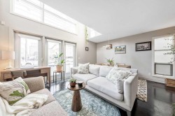 Loft living meets urban design in this rare offering at The Avalon, an intimate, gated collection of just five residences in the heart of Bridgeland. Thoughtfully arranged across three levels and offering over 1,000 sq. ft. of well-defined interior space, this home celebrates light, effortless flow and striking architectural presence. Inside, soaring ceilings frame a main floor wrapped in natural sunlight. The kitchen is anchored by a gas range, black granite surfaces, and stainless-steel appliances. Its clean lines transition seamlessly into the open living and dining area. Ascending to the lofted bedroom, the upper-level suite becomes a quiet retreat, anchored by a natural gas fireplace, illuminated by soft daylight, and completed with a generous walk-in closet and a full 4-piece bath. The lower level adds purposeful versatility with a cozy second living area, half bath, laundry, and ample storage - well-suited for guests, a dedicated workspace, or a private media room. Set within one of Calgary’s most beloved inner-city communities, this home places you steps from Bridgeland’s vibrant cafés, restaurants, local vendors, and the city’s extensive bike pathways. Downtown sits just beyond, close enough to walk, yet far enough to feel like an escape. Loved for its walkability, sense of community, and unmistakably house-like feel, this residence offers a rare blend of design, function, and lifestyle. Whether you’re seeking a home that elevates daily living or an investment with enduring appeal, this loft-style home delivers both.