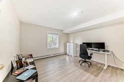 Welcome to the sought-after Malibu floor plan, the largest two-bedroom, two-bathroom condo in the building — freshly painted in warm, neutral tones and move-in ready!Step inside to an expansive living room with a cozy corner fireplace and built-in surround sound wiring, opening onto a large private deck overlooking the tranquil fountain and courtyard. The bright, open kitchen flows seamlessly into a generous dining area that easily seats 6–8 people, perfect for entertaining.The primary suite offers a spacious bedroom, walk-through closet, and private 4-piece ensuite. A second oversized bedroom sits next to another full bathroom — ideal for family, guests, or a home office.You’ll love the in-unit storage and laundry room with washer & dryer included. Condo fees conveniently cover heat and electricity, adding value and peace of mind.Parking is easy with an assigned stall plus an additional pass for street parking.Unbeatable location — just steps to the C-Train, YMCA, library, shopping, restaurants, and movie theatre.