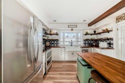 This loved family home has been owned by two generations and is being offered for sale for the first time in 49 years. It sits in a quiet cul-de-sac with a peaceful park right out front. This updated Mayland Heights bungalow is minutes from downtown and has nearly $175K in recent work. New luxury vinyl plank runs throughout the entire house. The main floor offers a dedicated dining area and a redesigned kitchen with stainless appliances, a movable island, a breakfast bar, and a mix of cabinetry and open shelving.There are three thoughtful main floor bedrooms, including a front room with a built-in Murphy bed that folds into a desk, and a second bedroom with a custom live-edge built-in desk. The main bath is fully renovated with heated floors and a laundry chute.The renovated lower level lives like its own suite. It features a large family room with bar, a half bath, laundry with built-in storage, and an oversized bedroom with the original gas stove converted to electric as a feature, a walk-in closet, and a private ensuite with custom tile. Plus extra under-stairs storage. Outside, the east-facing backyard includes a poured concrete patio, garden beds, greenhouse, shed, and fire pit, mature apple tree and raspberries. Big-ticket upgrades include new triple-pane windows (2025), new washer and dryer (2025), high-efficiency furnace (2024), newer hot water tank and softener (2020), updated electrical with hard-wired smoke alarms (2023–2024), new insulation and air sealing (2025), custom motorized blinds (2024), and participation in the Canada Greener Homes program with pre- and post-work ECO inspections. Move-in ready, energy-efficient, flexible layout, inner-city location.