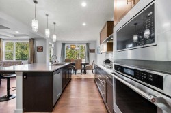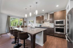 Step into this spacious 2-storey detached home in the desirable community of Walden, offering over 2,400 sq.ft. of living space with 3 bedrooms, 2.5 bathrooms, and an attached double garage—perfect for your growing family. WALK-OUT BASEMENT and BACKS ONTO GREEN SPACE. The open-concept main floor is filled with natural light and features beautiful hardwood flooring throughout. A welcoming foyer leads to the bright living room, ideal for cozy evenings by the gas fireplace. The modern kitchen is equipped with quartz countertops, SS appliances, stylish cabinetry, a large pantry, and a generous island with seating, while the dining area opens to a large deck—perfect for entertaining or summer BBQs. A main floor office/flex space, mudroom, and 2-pc bath add everyday functionality, plus central A/C ensures year-round comfort. Upstairs, a central bonus/family room offers extra lounging space, along with a large laundry room, two generous bedrooms—each with walk-in closets—and a shared 3-pc bath. The primary suite features its own walk-in closet and a luxurious 5-pc ensuite with dual quartz vanities, a soaking tub, and a separate shower. The walk-out unfinished basement backs directly onto green space, ready for your personal touch. Other features include a rough-in gas line in the garage for heating the garage, and a 3-zone furnace system, all floors controlled separately. Outside, the fully fenced backyard provides plenty of room for kids to play and pets to roam. Ideally located near schools, shopping, transit, parks, pathways, recreation centres, and multiple golf courses—close to the Township Shopping Centre, numerous ponds and green spaces, the Wolf Willow off-leash dog park, All Saints High School, and the South Health Campus, with quick access to Macleod Trail, Stoney Trail, and Deerfoot Trail. Call to book your private viewings today!