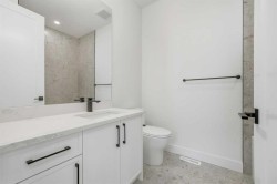 Gorgeous new 3 bedroom home built by Royal Design Homes on a quiet cul-de-sac in sought after Richmond, offering over 2000 sq ft of living space plus a self contained legal 2 bedroom basement suite. The bright & airy main level presents engineered hardwood floors, high ceilings & stylish light fixtures, showcasing the front dining area with beautiful feature wall & ample space to host family & friends. Create culinary masterpieces in the kitchen that’s tastefully finished with contrasting quartz counter tops, large island/eating bar, excellent appliance package & plenty of storage space, including a pantry & lovely built-in banquette. The living room is anchored by a floor to ceiling feature fireplace & built-ins. A cozy office space is tucked away just off the kitchen, perfect for a home office setup. Completing the main level is a convenient mudroom with bench, hooks & storage & a 2 piece powder room with wall paper accent & raised stone sink. Ascend the lighted staircase to the second level that hosts a loft/bonus room, 2 bedrooms, 4 piece bath & laundry room with sink & storage. The primary bedroom with vaulted ceiling boasts an outstanding walk-in closet & posh 5 piece ensuite with dual sinks, make-up vanity, relaxing freestanding soaker tub & rejuvenating steam shower. The fully contained legal basement suite features engineered hardwood floors, a large living/dining area with tons of built-in storage, kitchen with island/eating bar, quartz counter tops & stainless steel appliances. Two bedrooms, a 4 piece bath & dedicated laundry facilities complete the legal basement suite. Other notable features include roughed in air conditioning & 2 furnaces. Outside, enjoy the beautifully landscaped front garden & back yard with deck & access to a double detached garage. The location is incredibly convenient, close to vibrant Marda Loop, excellent schools, parks, public transit & easy access to 26th Avenue & Crowchild Trail.