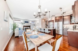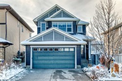 Welcome to this charming and well maintained home located in the heart of Evanston! This property features a front-attached double garage, a west-facing backyard, and a warm, inviting atmosphere perfect for families. Positioned next to a walking pathway, the home enjoys additional privacy with no direct neighbor on one side. The main floor boasts a functional layout with a 2-piece bathroom, a convenient laundry room, and an open-concept kitchen, dining area, and living room. Large west-facing windows flood the main living spaces with natural light, creating a bright and welcoming setting throughout the day. Upstairs, you’ll find three spacious bedrooms and two full bathrooms, including a comfortable primary suite with its own private ensuite. The beautifully designed low-maintenance backyard is a true highlight—complete with a large storage shed, an expansive poured concrete patio, a fire pit, and a charming garden area, offering the perfect outdoor retreat for family gatherings. A detached gazebo is also included and can stay or be removed at the buyer’s preference. The front and back gardens have been lovingly cared for by the owner, with abundant seasonal flowers that create a stunning display when they bloom in the summer—adding color, character, and charm to the property. New roof, gutters, and siding—have been completed following hail damage, providing peace of mind for the next owner. The unfinished basement offers a blank canvas to create the perfect additional living space to suit your needs. This exceptional location is hard to beat: 1.5 km to Kenneth D. Taylor School (K–4), walking distance to the new Evanston Heights Middle School (Grades 4–9), opening Fall 2026, 800 meters to Evanston’s commercial hub with FreshCo, restaurants, gas station, banks, and more. With easy access to Stoney Trail offering effortless commuting around the city. A wonderful opportunity to own a bright, cozy home in one of Calgary’s most desirable family-friendly communities. Don’t miss it!
