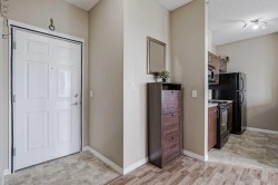 Discover the perfect blend of comfort and convenience in this bright and spacious one-bedroom condo at Bella Casa. Situated on the top floor, this corner unit offers an open layout with 9 ft. ceilings and plenty of natural light. The kitchen features ample cabinetry and a raised breakfast bar, opening into a cozy living room complete with an electric fireplace. Step outside onto your private balcony to enjoy breathtaking views of downtown Calgary and the mountains. The generous primary bedroom includes a walk-through “His & Hers” closet leading to a 4-piece bathroom. This home also comes with titled underground parking, plus visitor and handicapped parking for your guests. Bella Casa residents enjoy access to a central courtyard with a gazebo and BBQ area, perfect for relaxing or entertaining. The building is pet-friendly (with board approval) and ideally located close to shops, restaurants, and transit, with quick access to downtown Calgary. Condo fees conveniently cover all utilities except electricity. Available for immediate possession – don’t miss this opportunity to make Bella Casa your new home.