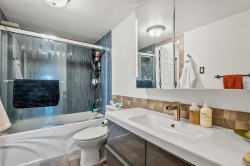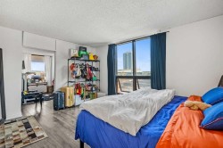 Spacious Corner Unit in the Heart of Downtown Calgary – 1 Bed + Den | Prime Location. Welcome to urban living at its finest! This exceptionally large 1 bedroom + den, 1 bathroom corner unit offers an unbeatable combination of space, natural light, and location – all in the vibrant core of Downtown Calgary.Boasting over 935 SQFT of thoughtfully designed living space, this open-concept layout is perfect for professionals, investors, or anyone seeking the convenience of downtown living without sacrificing comfort. The expansive floor-to-ceiling windows flood the home with natural light and offer stunning cityscape views, while the spacious den/office provides the ideal work-from-home setup or flex space for guests or hobbies. The contemporary open concept kitchen features stainless steel appliances, and sleek cabinetry, making it perfect for cooking and entertaining. The primary bedroom is bright and spacious with ample closet space, and the 4-piece bathroom includes modern finishes, and fresh paint. Building amenities include SUANA / PICKLEBALL COURT / FITNESS CENTER