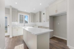 Move-In Ready | The Newport IV | Built by Broadview Homes | 1,380 SqFt | 3 Bed, 2.5 Bath | Top of the Line Finishes | Sparkling Quartz Countertops | Stainless Steel Appliances - Builder's Package | Full Height Cabinets | High Ceilings | Incredible Natural Light | South Facing Backyard | Alley Access | Rear Parking Pad. Welcome to the Newport IV by Broadview Homes — a beautifully designed brand new, move-in ready home offering 1,380 square feet of refined living space with 3 bedrooms and 2.5 bathrooms. Perfectly tailored for modern living, this home combines elegant finishes with functional design in a bright and open layout. The main level features 9’ ceilings that create a spacious, airy feel throughout. A sunlit Great Room welcomes you in and flows seamlessly into the dining nook and stylish kitchen. Thoughtfully designed for both everyday comfort and entertaining, the kitchen showcases a large central island, pot lights, and high-quality cabinetry by Wildwood Cabinets, complete with soft-close doors and drawers. The open-concept layout ensures effortless flow and connection between living spaces. Upstairs, the private primary bedroom offers a peaceful retreat with a walk-in closet and a well-appointed ensuite bathroom. Two additional bedrooms are generously sized and share access to a sleek main bathroom, while the convenient upstairs laundry makes everyday living even more effortless. Crafted with care and quality, this home includes high-efficiency, low-maintenance 100% vinyl windows, an engineered floor system, superior carpet, and a wide selection of luxury vinyl plank flooring and tile in all wet areas. Designed with future potential in mind, this home is also ready for a legal basement suite (subject to city approval). It features a separate side entrance, 9’ basement ceilings, kitchen sink and laundry rough-ins, and a second furnace with HRV system—making it ideal for a mortgage helper or multigenerational living. Located in a desirable new community, this move-in ready home offers an exceptional opportunity to enjoy the quality, style, and peace of mind that comes with owning a brand new Broadview Home. Schedule your private showing today and experience the best of modern living!