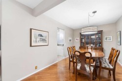 This home sits in a quiet cul-de-sac on a massive lot (0.26 acres) with panoramicviews of Nose Hill Park. Only half a block from the park itself this home is close tomany greenspaces and pathways. This beautiful home is fully developed with 1368sq ft up and a total of over 2000 sq ft of living space, boasting a total of fourgenerous sized bedrooms with 2.5 baths, two wood burning fireplaces with gaslighter, and best of all new Central Air Conditioning for year- round comfort. Thekitchen is fully renovated with a large center island featuring Caesarstone Quartzcounter tops complimented with matching stainless steel appliances that includesa gas convection stove with 2 ovens and an abundance of custom made cabinets.The washer and dryer is on the main level for your convenience. The living roomand dining area are very spacious; ideal for hosting large family gatherings. Themain floor has custom diagonal oak hardwood throughout, three bedrooms andthe primary bedroom has a wonderful three piece ensuite with a huge walk inshower. The lower level features a cozy family room with a fourth bedroom and atwo piece bathroom. Two entrances to the heated oversized double garage whichyou will absolutely love. This family oriented community has all levels of schoolsand offers quick and easy access in and out of the community; only 10 minutes todowntown, 10 minutes to the airport and minutes to the Winter Club. Thiswonderful fully updated home has been meticulously maintained over the yearsand shows pride of ownership throughout with a large private patio and maturelandscaping, a gardener’s paradise. Don't miss out on this fabulous opportunity tolive in one of Calgary's best communities, call for your private viewing today.
