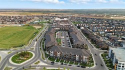 Perched on the TOP FLOOR in vibrant Seton, this two-bedroom, two-bath residence balances modern design with everyday ease. Inside, more than 700 square feet unfold in an airy, open layout framed by nine-foot ceilings and sunlight that moves across sleek flooring throughout the day.The kitchen is as functional as it is refined: crisp white cabinetry, stainless appliances, and a central island that doubles as a natural gathering point—whether for morning coffee or late-night takeout.Tucked away, the primary suite offers a calm retreat with its own private bath, while the second bedroom—paired with another full bathroom—gives flexibility for guests, a roommate, or a dedicated workspace. In-suite laundry, air conditioning, a titled parking space, and separate storage add quiet practicality to the home’s thoughtful design.Step out to your private balcony for a breath of fresh air and a glimpse of the surrounding community. Beyond the front door, Seton itself becomes part of your lifestyle: restaurants, cafés, the massive YMCA, and South Health Campus all just minutes away.This isn’t simply a condo; it’s a carefully composed space that makes style and convenience feel effortless.