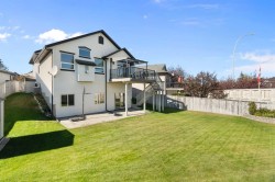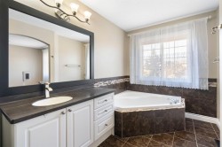 Incredible custom-built home on a pie-shaped lot in desirable Panorama Hills! The main floor features stunning site-finished, ebony-stained red oak hardwood floors and soaring vaulted ceilings with built-in speakers, creating a warm and inviting living space centred around a gas fireplace and triple-pane windows. The kitchen impresses with Corian countertops, an under mount sink, and recently upgraded stainless steel appliances, flowing seamlessly into the dining and living areas that overlook the spacious nook and massive backyard. The main floor also features an updated 4-piece bath, a large bedroom, a flexible second bedroom or office, and an additional flex space/living room off the kitchen. Upstairs, the primary suite is a true retreat with a walk-in closet with custom shelving and a renovated ensuite boasting a corner jetted tub, separate shower, and Corian counters. The walkout basement is an entertainer’s dream, featuring 12-foot ceilings ideal for a pool table or large recreational area, a dry bar, a full 3-piece bathroom, and direct access to a paving stone patio. Step outside to a massive backyard with mature landscaping, underground sprinklers, perennials, two sheds, and a composite deck with glass railing and natural gas BBQ hookup. A thoughtfully designed concrete staircase on the side of the home leads to the basement entrance through sliding patio doors. With a brand new roof and eves troughs (2025), triple-pane windows, AC, fresh paint, updated lighting, a professionally cleaned home and carpets, and a garage with sturdy plywood walls, this home is truly move-in ready. Don’t miss your chance to live in this thoughtfully upgraded, elegant, and spacious home in Panorama Hills—perfect for entertaining, relaxing, and enjoying every comfort.