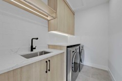 Modern luxury meets timeless charm in this beautifully crafted semi-detached home in the heart of Mount Pleasant. Offering over 1,900 sq. ft. of thoughtfully designed living space above grade, this 3-bedroom, 2.5-bathroom residence blends high-end finishings with family-friendly function and a legal secondary suite (pending final inspection) with 2 bedrooms, 1 bathroom, over 800 sq. ft. of living space, all just steps from Confederation Park and the vibrant 4th Street corridor.The main floor welcomes you with soaring 10’ ceilings, engineered hardwood floors, and custom millwork throughout. The open-concept living and dining area is anchored by a sleek gas fireplace with built-in shelving and large sliding glass doors that open to a bright facing backyard, perfect for indoor-outdoor living.The chef’s kitchen is a showstopper, complete with premium stainless steel appliances, a custom range hood, quartz countertops, a central island with seating, and full-height cabinetry.A pocket office with a built-in desk and shelving is located near the front and at the rear, a mudroom with built-in storage keep day-to-day life organized and clutter-free.Upstairs, the primary retreat impresses with vaulted ceilings, a large walk-in closet, and a spa-like ensuite with heated tile floors, dual vanities, a glass shower, freestanding soaker tub, and private water closet. Two additional bedrooms with custom closets, a laundry room with sink and cabinetry complete the second floor.This home also features a 2-bedroom legal secondary suite (pending final inspection), offering its own private side entrance for added privacy and independence. Designed with the same elevated finishings as the main level, the suite includes a stylish full kitchen, open-concept living and dining area, a sleek 4-piece bathroom, and dedicated laundry with a built-in sink. Whether you're accommodating extended family, welcoming long-term guests, or exploring rental opportunities, this flexible space adds both function and future value.Located on a quiet, tree-lined street in one of Calgary’s most sought-after communities, you’re just steps from parks, walking paths, top-rated schools, and popular local spots like Velvet Café, 4th Spot Kitchen & Bar, and Milk Ice Cream. Quick access to 16th Ave, 14th Street, and transit makes commuting a breeze.This is your opportunity to own a brand new, upscale home in a neighbourhood that truly has it all.