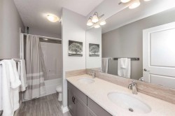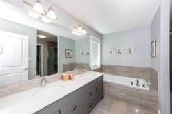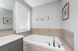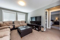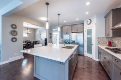Welcome to this beautifully appointed 5-bedroom home in the sought-after Estates of Auburn Bay, where upscale living meets lakeside leisure. With PRIVATE LAKE ACCESS just steps away, this property offers an unmatched lifestyle in one of Calgary’s premier lake communities. Step inside to discover a thoughtfully designed floorplan featuring a spacious front foyer, a large open-concept main level, and a striking double-sided gas fireplace that adds warmth and ambiance to both the great room and adjacent living spaces. At the heart of the home lies a chef-inspired kitchen with custom grey cabinetry, gleaming white quartz countertops, stainless steel appliances (including a gas cooktop), a mosaic glass tile backsplash, and a massive kitchen island perfect for casual dining and entertaining. Upstairs, you'll find four spacious bedrooms, including a serene primary retreat with a walk-in closet and a luxurious 5-piece ensuite. The upper level also features a bright and versatile bonus room, a stylishly designed 5-piece bathroom with a double vanity for the kids, and a large laundry room complete with quartz countertops and plenty of space for folding and organizing — a dream for busy households. The partially finished basement includes a fifth bedroom and awaits your personal touch, offering endless possibilities for customization — from a home theatre to a gym or guest suite. Outdoors, enjoy a fully fenced and landscaped yard with mature trees and shrubs, a spacious deck, private hot tub, and pergola — ideal for year-round entertaining. A private pathway leads to your dock, granting year-round access to swimming, kayaking, paddleboarding, and skating. Ideally located within walking distance to ponds, pathways, parks, and playgrounds, this is a rare opportunity to own in one of Auburn Bay’s most coveted enclaves.