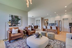 Discover the perfect harmony of elegance and comfort in this stunning home, located in the highly coveted Shawnee Park community. Located next to a lush established green space and backing onto vibrant community gardens, and bocce ball courts, this property boasts over 3,000 square feet of impeccably designed living space, crafted to impress even the most discerning buyer. Step through the front door and into a home that radiates sophistication. Soaring 9-foot ceilings and warm hickory wide-plank hardwood floors set the tone for the stylish interiors. The European-inspired kitchen is a culinary masterpiece, featuring sleek two-tone cabinetry, quartz countertops, stainless steel appliances including a gas stove. A walk-through pantry offers practical storage solutions, while the eat-up island invites casual dining and effortless entertaining. Adjacent, the bright and inviting living room beckons with expansive windows and a gas fireplace framed in chic wood paneling. The dining area seamlessly transitions to the South/East-facing backyard, where a composite deck, gas BBQ hookup, and serene landscaped views create the ideal space for outdoor gatherings or quiet relaxation. Upstairs, the luxurious master suite offers a private retreat, complete with an oversized walk-in closet and a spa-inspired en-suite. Dual vanities with an abundance of storage, a custom tiled shower and a private WC elevate the experience to pure indulgence. The upper level also features two generously sized bedrooms, a beautifully designed family bathroom, a convenient laundry room, and a large sunlit bonus room, perfect for relaxing or entertaining. The fully finished lower level adds even more versatility to this remarkable home. It includes a spacious fourth bedroom, a full bathroom, a crafts room and ample storage. A large family room with a second fireplace and a dedicated office space with built-in shelving ensure that every need is met. Additional premium features include a large heated double garage that can accomodate a truck, underground sprinklers, and designer lighting throughout. Located moments from Fish Creek Park, with an array of commercial amenities including eateries, F45 Gym and a Montessor Academy/Childcare not to mention the convenience of nearby Millrise and Shawnessy's established offerings. The proximity to the LRT station simplifies downtown commutes and confirms that this home is not just a residence but a lifestyle choice of the highest order.