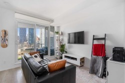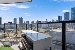 Attention Savvy Investors and Professionals! Look no further! Experience the Most Affordable LUXURY living condo in vibrant Downtown Calgary. Sunny WEST Facing unit with big balcony and fantastic VIEW! Modern kitchen with beautiful quartz countertops, built-in high-end appliances, and a big island. , Stylish tile backsplash, and ample cabinetry. In-suite laundry. Titled underground secured parking and a large storage locker on P2 level are included. The renowned sought-after building Verve features: Convenient full concierge service. Ample visitor parking and bike storage. Convenient Guest Suites provide accommodations for your visitors. Rooftop 25th floor observation/viewing deck and indoor gathering/meeting spaces. Sixth floor Spacious and luxury lounge/party room and outdoor hot tub, BBQ, gas fire pit, table tennis tables and outdoor furniture. Fitness Center is also on this floor. 24-Hour security. Pet-Friendly with board approval. WALKING distance to Bow River pathway, parks, island, LRT station, superstore, city hall, central library, community garden, restaurants, national music center, stampede park, casino, Chinatown and downtown core office buildings. One of the Best school systems includes Western Canada High School etc. ACT NOW before it’s gone again!