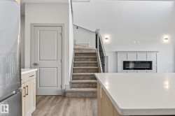 Discover over 1900 sq ft of luxurious living space nestled in the highly desirable community of Southbridge in Calmar! This stunning two-storey home features upgraded finishes, 3 spacious bedrooms, soaring OPEN-TO-BELOW living room ceilings, 9' kitchen ceilings, sleek QUARTZ countertops, AMPLE CABINETRY, STAINLESS STEEL APPLIANCES, a WALK-THROUGH PANTRY AND BUILT IN SHELVING THROUGHOUT. This OPEN-CONCEPT layout and cozy fireplace perfectly blend relaxation and entertainment. A versatile flex room can even be transformed into a 4th bedroom if desired. The primary bedroom offers a luxurious 4-PIECE ENSUITE with a private enclosed toilet area & modern shower which flows seamlessly into a WALK-IN CLOSET to get ready with ease. A 2nd FULL upstairs bathroom and laundry room adds convenience. The EXTENDED DOUBLE GARAGE is practically designed roughed-in for a future garage heater and includes a hose bib. Conveniently located near the airport, Leduc, Devon & is in walking distance to expansive park-like settings!