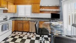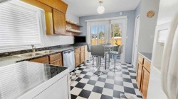 Charming Custom Home in a Prime Camrose Location. Welcome to this beautifully cared for 1976 custom home in one of Camrose's most desirable areas- just steps from schools, shopping and parks! The Main level features a sunken living room with wood burning fireplace, 2 piece bathroom, a bright dining area and private kitchen with a cozy eat-in nook.-perfect for morning coffee. Enjoy the convenience of main floor laundry and plenty of storage throughout. Upstairs, you'll find two spacious bedrooms and a full bathroom. The Primary is tucked away and offers privacy with it's own 2 piece bathroom and walk in closet. The lower level includes a large rec room, 3 piece bathroom and flex space with exterior access- great for guests, home office or hobbies. Outside, the fully fenced backyard provides room to relax and play, while the double detached garage, extra parking space and front carport add everyday convenience. Lovingly maintained and impeccably cared for, this home features newer windows and exterior doors throughout, adding comfort and efficiency. Ready for you to add your modern touch and make it your own!