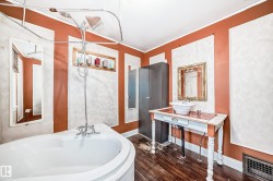 Very clean 1,022 sq ft 1929 built 2 bedroom character home centrally located in the Alberta Ave neighborhood. The home features oak hardwood floors, lots of large windows for endless natural light throughout the home, decorative decor throughout, vauted ceiling large living room with fireplace, dining room, and a large full bathroom. The kitchen was renovated with quartz countertops, butcher block, gas stove, refrigerator, and microwave. The full basement is unfinished and great for storage. The garage is a single detached with and attached carport. The home is on a very nice quiet street just a short distance to Nait and Kingsway Garden Mall and shops an Cafes on 118 ave.