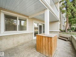 WELCOME HOME - Spacious Ground-Floor Retreat Nestled in ASPEN GARDEN ESTATE. Start your day off with the sound of the birds & your favorite cup of coffee on Sunny private patio, then step inside to enjoy illuminated ambiance of fresh paint & new window coverings. Pass foyer, spacious living room greets you with adjacent kitchen featuring lots of cabinet space and dining area. Master suite, complete with a walkthrough closet & 2PC ensuite, promises comfort, while a second generously sized bedroom and a full bathroom cater to all family needs. In-suite laundry adds to the practicality. Prime Location boasts key amenities including; Ravine / Scenic trails, SKI HILL, Elementary and Junior High School, easy access to major routes and U of A, Public Transit, and Shopping. This ground unit offers unparalleled convenience; INDOOR REC ROOM, FITNESS ROOM, SWIMMING POOL, HOT TUB and a large outdoor deck. And with ELECTRICITY, GAS, HEAT, WATER & SEWERAGE included in the condo fee, FINE - Effortless living awaits you!