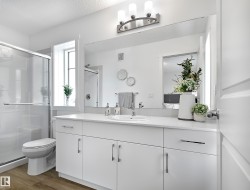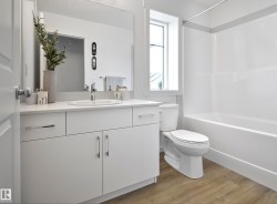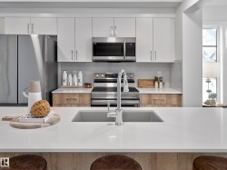 NO CONDO FEES and AMAZING VALUE! You read that right welcome to this brand new townhouse unit the “Georgia” Built by StreetSide Developments and is located in one of Edmonton's newest premier south west communities of Keswick. With almost 1300 square Feet, front and back yard is landscaped, deck and a double detached garage, this opportunity is perfect for a young family or young couple. Your main floor is complete with upgrade luxury Laminate and Vinyl plank flooring throughout the great room and the kitchen. Highlighted in your new kitchen are upgraded cabinets, upgraded counter tops and a tile back splash. Finishing off the main level is a 2 piece bathroom. The upper level has 3 bedrooms and 2 full bathrooms that is perfect for a first time buyer. *** Under construction and the photos used are from show home of the same layout colors and finishings may differ this home will be complete this week ***