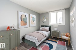 LOCATION, VIEWS, AND VALUE! This stylish, FULLY RENOVATED 2-bedroom, 2-bath condo is perfectly positioned high on the second-from-top floor with sweeping balcony views of the River Valley, High Level Bridge, Legislature grounds, and downtown skyline. The open-concept layout offers bright living space with bedrooms on opposite sides for added privacy. The primary suite includes a 4-piece ensuite, while the second bedroom and full bath complete the design. Heated underground parking, a car wash bay, and an almost completed outdoor courtyard add everyday convenience and comfortable living. Condo fees include all utilities except electricity for simple budgeting. One of Edmonton’s most walkable areas, you’re steps from the LRT, Victoria Park, the River Valley, U of A, MacEwan, shops, and restaurants. Easy, upgraded, and centrally located!