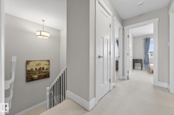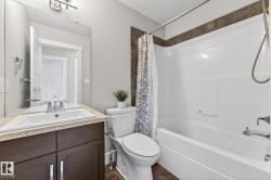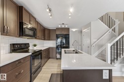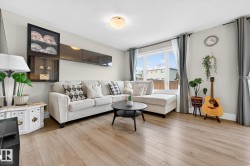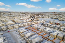 This is the perfect home for your New Year's resolution! Located in highly desirable Windermere, this home offers total living space of 1,845 Sq Ft ,and an unbeatable lifestyle. Enjoy the premium location steps from a top playground and backing onto a peaceful walking trail leading to a scenic pond, plus the convenience of great schools and shopping nearby. The open-concept main floor features durable laminate flooring and a gourmet kitchen with sleek quartz countertops and black appliances. The living room includes custom built-ins and display shelving for smart storage. Upstairs, the massive Primary Suite boasts a dramatic vaulted ceiling, a spacious w/i closet, and a luxurious 4-piece ensuite, complemented by two additional bedrooms and a second 4-piece bath. The fully finished basement enhances the living space with resilient laminate flooring, a home theatre-wired bonus room, and a 2-piece bath. Don't miss this gem! A perfect lifestyle property awaits—come live life!