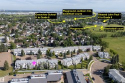 WALKOUT BASEMENT in this THREE BEDROOM home with FOUR BATHROOMS. South facing deck and back patio, and green space. LARGE PRIMARY BEDROOM is 13'5" x 12'3" and it has a THREE PIECE ENSUITE BATHROOM. This bedroom does need new paint and carpet. The other two bedrooms upstairs are also a good size, 13'7"x10' and 12'2"x11'11" and both have closet organizers. HIGH EFFICIENCY FURNACE installed about January 2018. The basement family room opens to the back patio and green space. There is also a den or office area in the basement, along with a bathroom. There are CUSTOM FITTED BLINDS in the home. Features you may appreciate: attached garage, nearby visitor parking, next to parks, walking distance to schools, and GREY NUNS HOSPITAL. Shopping close by at Mill Woods Towne Centre, and the LRT line is also close. This is a small, quiet, and well kept complex with vinyl windows, and Perma decks.