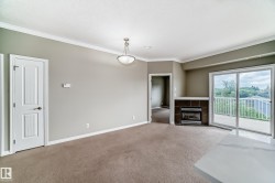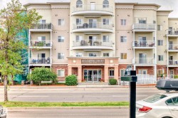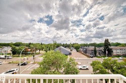 Top-floor, south-facing condo in a well-managed 45+ adult building offering great value and location! Enjoy tons of natural light and the largest sunny balcony in the building, perfect for relaxing or entertaining. Located just across from Bonnie Doon Mall and Safeway with public transit at your doorstep—plus easy access to the University of Alberta. This bright unit features 9 ft ceilings, air conditioning, gas fireplace, and open-concept living with a large kitchen counter and breakfast bar. New countertops and paint. The spacious master bedroom includes a walk-through closet and private ensuite. There's also a sizable den, in-suite laundry, heated underground parking, and storage. Condo fees include heat, water, and sewer. Residents have access to a social room, guest suite, and rooftop terrace. Ideal for downsizing or low-maintenance living in a vibrant, convenient location!