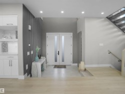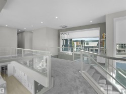 This exquisite 6-bedroom, 6-bathroom home offers high-end finishes & exceptional design. Features 2 full kitchens on the main level, a wet bar in the basement, & a heated triple-car garage with sink, drainage & EV charger. Grand double-door entrance, spacious foyer, and great room with feature fireplace. The chef’s kitchen includes Huge U shape island with raised bar, quartz countertops, JennAir Downdraft Vent, under sink Vroom for kitchen and behind the cabinets it leads to hidden spice kitchen, Hidden 2nd fridge & concealed mudroom. Dining nook opens to an extended deck—perfect for entertaining. Upstairs: 4 bedrooms with ensuite access, balcony & laundry. The primary suite features a spa-style ensuite with heated floors and walk-in dressing room. The finished basement includes a rec area, bar kitchen, 7.1 home theatre System, bedroom & full bath. completed with Central A/C, sound system and Hide-A-Hose central vacuum on all floors, garburator, premium flooring, JennAir paneled fridge freezer.