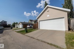 This clean and well-maintained duplex offers comfort, convenience and access to one of Edmonton’s most sought-after lake communities.The main floor features gleaming hardwood floors, open-concept living, a real stone gas fireplace, quartz countertops, stainless steel appliances, custom closets and plenty of storage.Upstairs, you will find two bedrooms plus a spacious loft (easily convertible into a third bedroom).The primary suite showcases a gorgeous stone feature wall, walk-in closet and a bright en-suite bath filled with natural light. Your south-facing backyard is built for entertaining with a massive deck, pergola, privacy wall, and heat-resistant stone BBQ wall. The double detached insulated garage includes an extra storage loft—a rare bonus! Located just steps away from parks, schools and all the amenities Summerside offers including exclusive lake access for swimming, paddleboarding, boating and more.