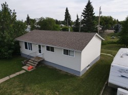 A charming 3-bedroom bungalow sitting on a spacious nearly one-acre lot within town limits, offering both convenience and privacy. The north-facing home features a partially finished basement, perfect for extra living or storage space. Its prime location is close to the elementary school, ideal for families. Enjoy serene surroundings with no neighbors to the west, ensuring added seclusion. A rare blend of space, location, and potential.
