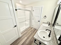 This brand new end unit triplex, built in 2025, features a modern two-storey design with an attached heated garage! It boasts a fenced and landscaped backyard, with a deck, providing adding privacy and outdoor space. Inside, you'll find durable vinyl plank flooring throughout the main, open concept with bright white cabinetry that's beautifully contrasted by a rich dark island with an eating bar. Stainless steel appliances, and a 2 piece bathroom finish off the main floor. Upstairs, the large primary bedroom offers a walk in closet and a sitting area, along with a 4 piece ensuite. There are also 2 additional bedrooms, another full bathroom, and an upstairs laundry for added convenience. Also comes complete with a concrete driveway, 10 year new home warranty, and quick possession!