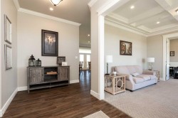 Tucked into the prestigious Edgemoor subdivision, this stunning estate offers the best of both worlds—quiet country living just minutes from West Lethbridge. Set on 1.1 acres of beautifully landscaped land with views of the coulees, mountains, and open fields, it’s hard to beat this location—or the lifestyle that comes with it.The main home is over 5,600 sq. ft. of thoughtfully finished space, with 10-foot ceilings on the main floor and 9-foot ceilings in the basement. Built with brick and stucco, and finished with granite countertops, stainless steel appliances, vinyl plank flooring, and four fireplaces, this home is as comfortable as it is elegant.The layout is ideal for families and entertaining, with a large chef’s kitchen featuring a central island and plenty of storage. Just off the kitchen are spacious main living areas, a sitting room, bright home office, and main-floor laundry/mudroom. The primary suite is a private retreat with its own granite-framed fireplace and a beautifully finished 5-piece ensuite.Upstairs, you’ll find a huge rec room with a fireplace and two oversized bedrooms—each 16' x 23'—perfect for kids or extended family visiting from out of town. Downstairs, the finished basement includes a massive family room with another fireplace, additional bedrooms, storage, and space to stretch out.Out back, a separate carriage house offers even more flexibility. With a double and single garage below and a 2-bedroom legal suite + office/storage/potential for a bachelor suite above, it’s perfect for multi-generational living, guests, or rental income.The property is fully landscaped with trees, underground sprinklers, and privacy throughout. Both the main house and carriage suite are equipped with fire suppression systems and connected to Telus fibre optic internet for fast, reliable service.Whether you're raising a family, working from home, hosting long-term guests, or just looking for breathing room close to town—this home offers space, comfort, and endless possibilities.