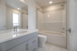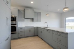 Welcome to the "Lanark II" by Stranville Living, located in the desirable Lethbridge community of Southbrook. This new home is situated merely a few dozen meters from Dr. Robert Plaxton K-5 public elementary school, whose property includes a new playground, soccer pitch, baseball diamond, and a basketball court. Southbrook is conveniently located minutes away from big box shopping, various restaurants, and the VisitLethbridge.com arena and event center. This two storey home is well laid out and boasts a main floor rivaled by few homes of this size. It incudes a beautifully appointed kitchen with Adora Cabinets, fully tiled backsplash, and quartz countertops at the base cabinets and the huge peninsula. Stranville Living's top tier appliance package includes a seamlessly integrated paneled Fisher & Paykel fridge, paneled dishwasher, induction cooktop, built-in hood fan, and a stainless steel wall oven and microwave combo unit. All in all, this is a clean and tight family home backing onto a new elementary school in one of the nicest neighborhoods in south Lethbridge. Tasteful finishes and quality workmanship make this an excellent investment for a buyer looking to start or continue the path to building equity through home ownership. High efficient mechanical equipment, Low E windows, and spray foam in the rim joists help keep your heating ad cooling costs in check. Very cool house on a terrific street in south Lethbridge! Photos contain virtual staging. There's nothing like NEW!