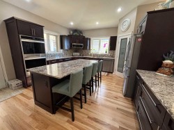 Welcome to this beautiful, one-of-a-kind property located on the south end of town, offering stunning views of the river right from your front veranda. With over 1,800 square feet of thoughtfully designed living space, this home features 5 spacious bedrooms and 3 full bathrooms — perfect for growing families or those who simply want more room to spread out. Step inside to find a bright, open-concept layout with recent renovations throughout, including brand new hickory hardwood flooring, granite countertops, and plenty of updated cabinetry including a new large island and custom built-in buffet. The kitchen is a chef’s dream with all new stainless steel appliances, featuring a gas stove top and double wall ovens. Step out onto the covered back deck or relax on the wraparound front veranda as you take in serene river views. The huge yard is ideal for people wanting to enjoy the outdoors with a large concrete patio and a fenced garden area that would be any gardeners dream with newly constructed multiple raised beds, it is ready for your green thumb. For those needing garage space, the large attached heated 2-car garage offers plenty of room. But that’s not all — there’s also a recently built 32x40 heated shop with 10' and 12' doors, perfect for your RV, boat, workshop, or other toys. This is more than a home — it’s a lifestyle. Don’t miss your chance to own this unique property with space, comfort, and views that are hard to beat. Call for your appointment to view.