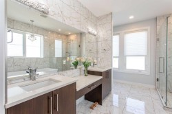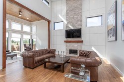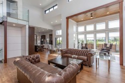 Beautiful MODERN home featuring EXTENSIVE UPGRADES AND HIGH END FINISHINGS. It boasts high ceilings and elegant tile work throughout. The sophisticated lighting design not only highlights the homes architectural beauty but also creates a warm, inviting ambiance. Each detail has been meticulously chosen to deliver the ultimate in comfort and style. Incredible curb appeal, grand entrance, stucco exterior and beautifully landscaped! Open the front door to your forever home and enjoy the modern luxury this home has to offer. An open floor plan soaring vaulted ceilings and massive triple pane (black interior) windows. Kitchen features, sub zero wine fridge, thermador dishwasher, wolf gas cook top, and oven! Expansive QUARTZ COUNTERTOPS, WALNUT CABINETRY, eat up island, reverse osmosis and soap dispenser are just a few more great features. The main floor boasts MAHAGONY HARDWOOD FLOORING, and the extended great room/sunroom features in floor heat. The living room features floor to ceiling NATURAL STONE fireplace wall with a wood mantle. There is a main floor laundry featuring a sink, cabinets and more beautiful white QUARTZ COUNTERTOPS. The main floor bedroom is currently used as an office and adjacent to the stunning 3-piece bath. The STAIRS are solid wood with OPEN RISERS and quality glass railing that lead to your PRIMARY bedroom. An oasis of its own, featuring walk-in closet with custom walnut built in cabinetry, and a 5 piece FULLY TILED ENSUITE. The ensuite has operational IN FLOOR HEAT, quartz counter tops, with dual sinks, and makeup desk, modern lighting, two shower heads, soaker tub and a water closet! The fully developed basement features OPERATIONAL IN FLOOR HEAT, 3 spacious bedrooms, one with its own walk-in closet, a large family room (34'10"x 31'3") with built in TV wall unit, and a functional wet bar with elegant herring bone back splash. There are two stunning spa like bathrooms, fully tiled with modern lighting. More great features this home offers: gas line to deck, composite front deck, glass railing, and duradeck on back deck, front FIR PILLAR, triple pane windows, mud room is tiled, walnut cabinets, wet bar/butlers pantry, custom panels, heated garage floor with floor drain, garage man door, modern overhead silent close door. Situated in the desirable and esteemed community of Timberstone, with an amazing array of shopping amenities nearby.